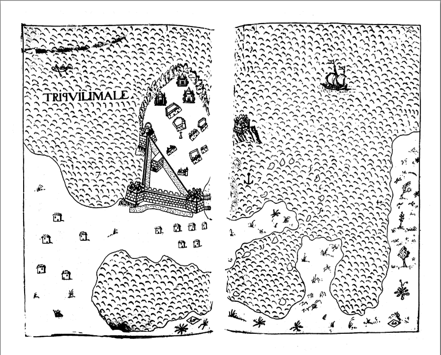 1635 இல் வரையப்பட்ட கோணேஸ்வரர் கோவிலை சுற்றிய வரைப்படம்.