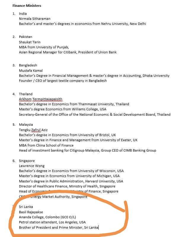 7 நாடுகளின் நிதியமைச்சர்களின் படிப்பு பட்டங்கள்.