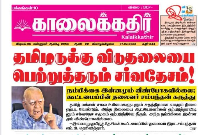 May be an image of 1 person and text that says 'பதில் ஜனாதிபதிக்கு இரா.சம்பந்தன் வாழ்த்து... தமிழ் மக்கள் பிரச்சனை தீரும் என நம்பிக்கை'