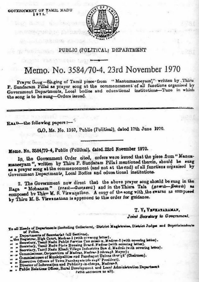 தமிழ்த்தாய் வாழ்த்து தொடர்பான அரசாணை.