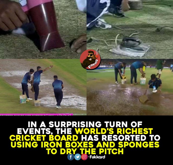அடேங்கப்பா... மைதானத்தை காய வைக்க... Iron Box, Hair dryer  எல்லாம் பாவித்திருக்கிறார்கள்.  🤣