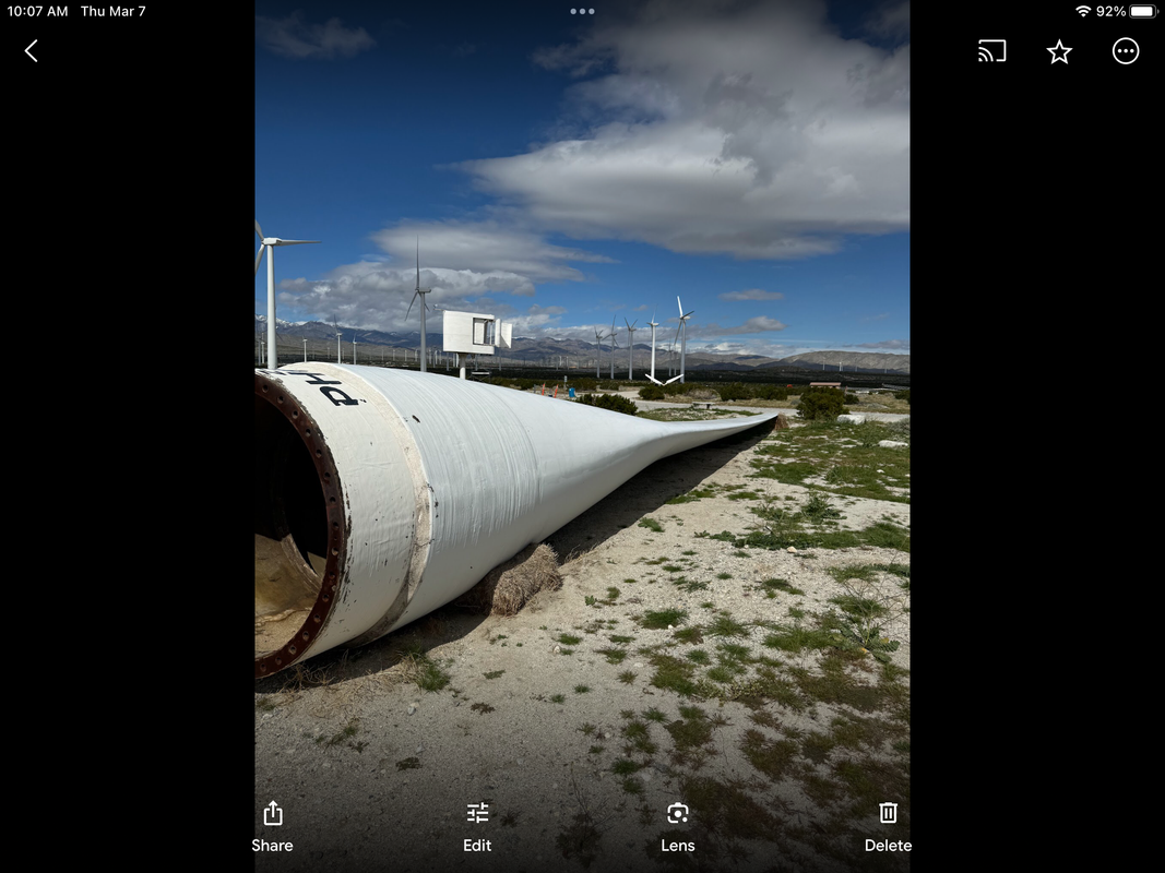 பெரிய காற்றாலையின் அடிப்பகுதியைப் பார்க்கவே எமது ஊர் கிணறுகள் மாதிரி பெரிதாக இருந்தது.பெரிய காற்றாலைகளின் சிறகுகள் தனித்தனியே ஒரு ரெயிலரில் கொண்டு போக முடியாது.இதற்கென்று தனி ரெயிலர்கள் தேவை.அவ்வளவு பெரிதாக இருந்தது.