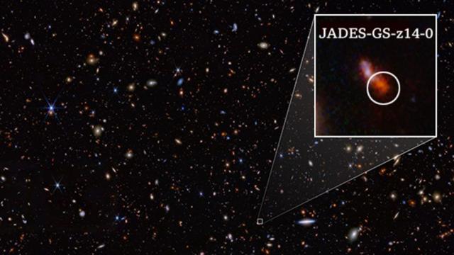 பெருவெடிப்பு (Big Bang) நிகழ்ந்து வெறும் 29 கோடி ஆண்டுகளுக்குப் பிறகு காணப்பட்டதாகக் கருதப்படும் ‘JADES-GS-z14-0’ என்ற நட்சத்திரங்களின் குழு ஆய்வாளர்களால் கண்காணிக்கப்பட்டு வருகிறது.