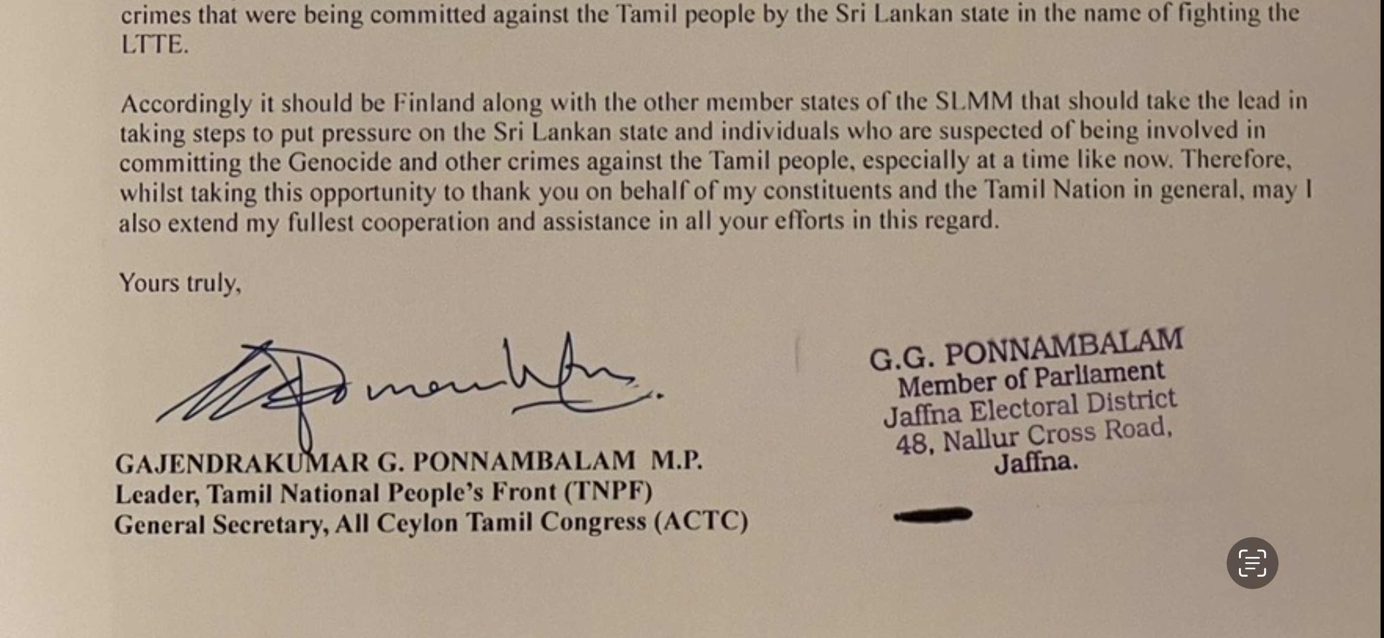 திரு கஜேந்திரகுமார் பொன்னம்பலம் வழமையாக ஆங்கிலத்தில் கையொப்பம் இடுவதால் அவரது தமிழ் மொழி உரிமை தொடர்பான வேண்டுகோள்கள் எல்லாம் அர்ததமற்றவை என்று கூற வருகின்றீர்களா? large.IMG_9450.png