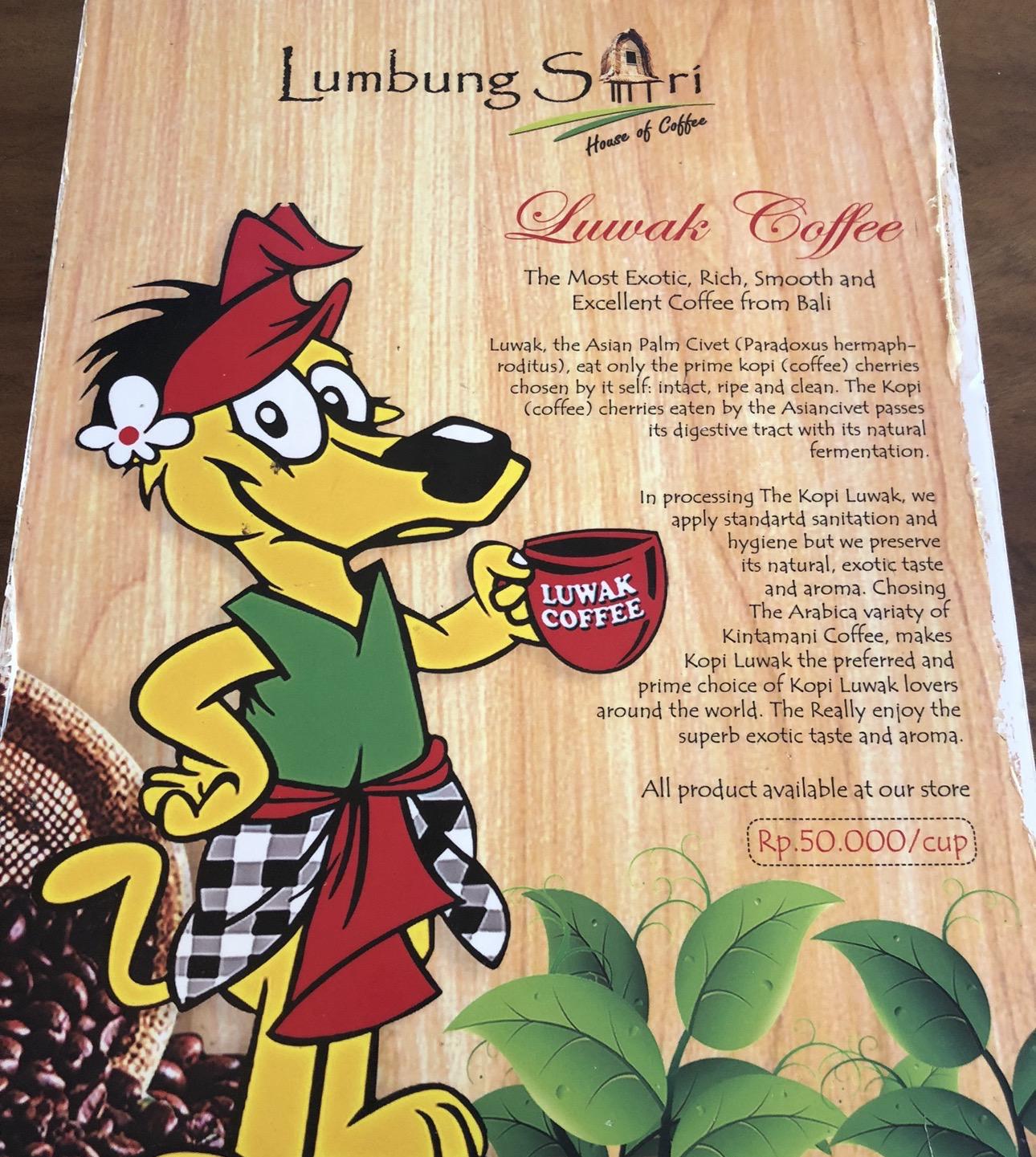 அண்மையில் பாலியில் (இந்தோனேசியா)இந்த காப்பி தயாரிக்கும் இடத்திற்கு போயிருந்தேன். சுவைத்துப்பார்ப்பதற்காக சிறிய அளவில் தந்தார்கள், மணந்து பார்த்தேன் வாசனை மிகவும் நன்றாக இருந்தது ஆனால் அதைக்குடிக்க மனம் இடம்தரவில்லை.