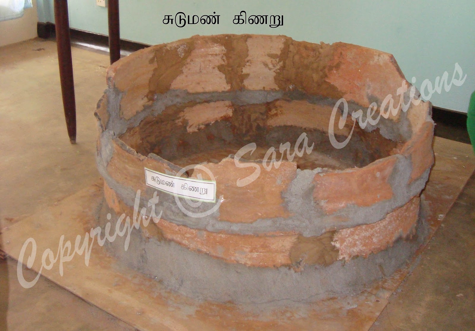 மணற் பாங்கான இடத்தில் ஒரு சிறிய குழியை ஏற்படுத்தி, நீரைப் பெற்றனர். இயற்கைக் காரணிகளால் அக்குழிகள் அழிந்து போகாமல் இருக்க, சுட்ட மண்ணைப் பயன்படுத்தினர். இதுவே சுடுமண் கிணறு எனப்பட்டது. யாழ்ப்பாண அரசன் சிங்கை ஆரியனின் கொட்டகம சாசனம், வல்லிபுரம் தங்கத் தட்டு போன்ற பல சாசனங்கள் படியெழுதப்பட்ட பலகைகளும் கூட காட்சிக்கு வைக்கப்பட்டிருந்தன.
