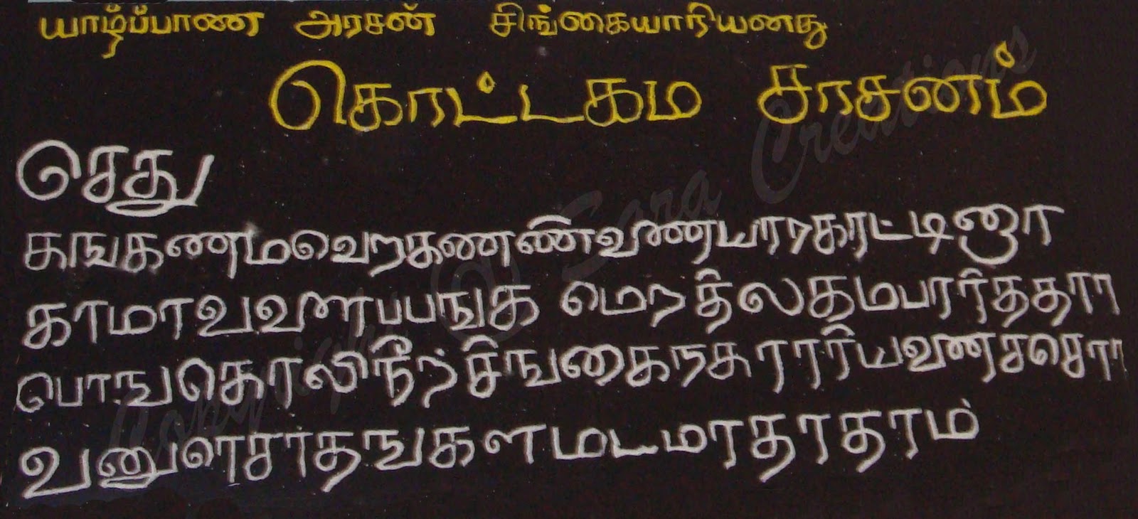 vm-10-02-ma-27+copy.jpgயாழ்ப்பாண அரசன் சிங்கை ஆரியனின் கொட்டகம சாசனம், வல்லிபுரம் தங்கத் தட்டு போன்ற பல சாசனங்கள் படியெழுதப்பட்ட பலகைகளும் கூட காட்சிக்கு வைக்கப்பட்டிருந்தன.