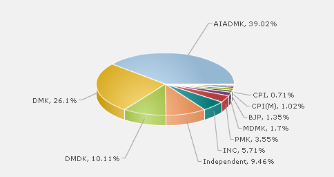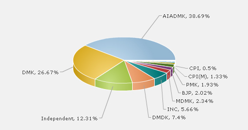 அதற்கேற்றாற் போல், அ.தி.மு.க.வும் தனித்துப் போட்டியிட்டது. தே.மு.தி.க. அணிக்கு மார்க்சிஸ்ட் கம்யூனிஸ்ட் கட்சி போக, இந்திய கம்யூனிஸ்ட் கட்சி எங்கே போவது என்று தெரியாமல் கடைசியில் தனித்து நின்றது.