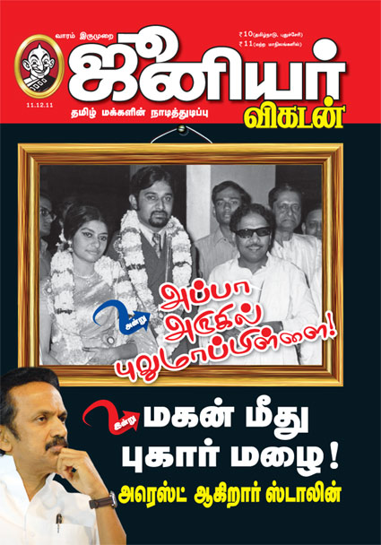 6)மு.க.ஸ்டாலின் பிரச்சனையில் 11.12.2011 தேதியிட்ட இதழில் அப்பா அருகில் புது மாப்பிள்ளை இன்று மகன் மீது புகார் மழை மேலும் ஒரு கவர் ஸ்டோரியும்,பாதிக்கப்பட்டவரின் முழுமையான பேட்டி,அவரது அந்தக்கால நினைவுகள் என விரிவாக வெளியிட்டுள்ளது.