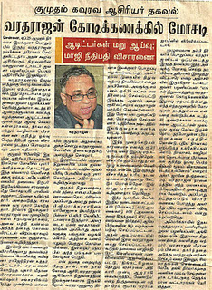 ஜூனியர் விகடன் முதலாளி பா.சீனிவாசன் மோசடிக் குற்றச்சாட்டினால் கைது செய்யப்பட்டு ஜாமீனில் விடுவிக்கப்பட்ட பா.வரதராஜனைக் காவல் நிலையத்தில் இருந்து தோளில் கை போட்டு வெற்றிவீரரைப் போல அழைத்துச் செல்வதைப் பார்த்தவன் ஆனந்த விகடன் தலையங்கத்தைப் படித்தால் ...... சிரிக்க மாட்டான்.