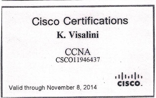 CCNAவில் இவள் பெற்ற மதிப்பெண் 90 சதவிகிதம். இதுவும் ஒரு உலக சாதனைதான்.மங்களூரிலுள்ள NITயும், திருவில்லிபுத்தூரிலுள்ள பொறியியல் கல்லூரி ஒன்றும் விசாலினியை தங்கள் கல்லூரியில் சேர அழைத்தும் இவர் பெற்றோர்கள், இன்னும் சில ஆண்டுகளுக்கு, இந்த இளம் அறிவாளியை, கல்லூரி வாழ்க்கைக்கு அனுப்பி வைக்கத் திட்டமிடவில்லை.