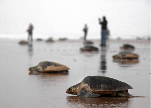 ஆமைகள் கடலோரங்களில் முட்டையிட ஏற்ற இடமாக தேர்ந்தெடுத்து குழிதோண்டி முட்டையிடுகின்றன. அடைகாப்பது கிடையாது. அதனால் தனித்துவிடப்படும் முட்டைகளை பறவைகள்,நாய்கள் சேதப்படுத்திவிடுவதுண்டு. சமயங்களில் குழந்தைகள் விளையாடக்கூட உபயோகிக்கின்றனர். இன்னும் சில கிராமங்களில் உணவுக்கும் கூட இந்த முட்டைகள் பயன்படுத்தப்படுகிறது. தூத்துக்குடி பகுதிகளில் ஆமையின் முட்டைகளும் அதன் ரத்தமும் உணவுக்காக பயன்படுத்தப்படுகிறதாம்.