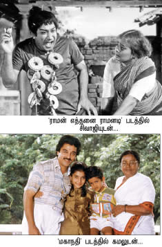 பின்னாளில் கமல்ஹாசனின் ஆஸ்தான நடிகையாக மாறிப் போனார் லட்சுமி. தேவர் மகனில் ஆரம்பித்து விருமாண்டி வரை கிட்டத்தட்ட கமல்ஹாசனின் அத்தனைப் படங்களிலும் அவர் நடித்துள்ளார். மைக்கேல் மதனகாமராஜன் படத்தில் இவர் நடித்த அந்த திருட்டுப் பாட்டி கேரக்டரை யாரும் அத்தனை சீக்கிரம் மறந்திருக்க முடியாது. அதேபோல மகாநதியில் கமல்ஹாசனின் மாமியாராக வந்து அனைவரையும் கவர்ந்தார்.